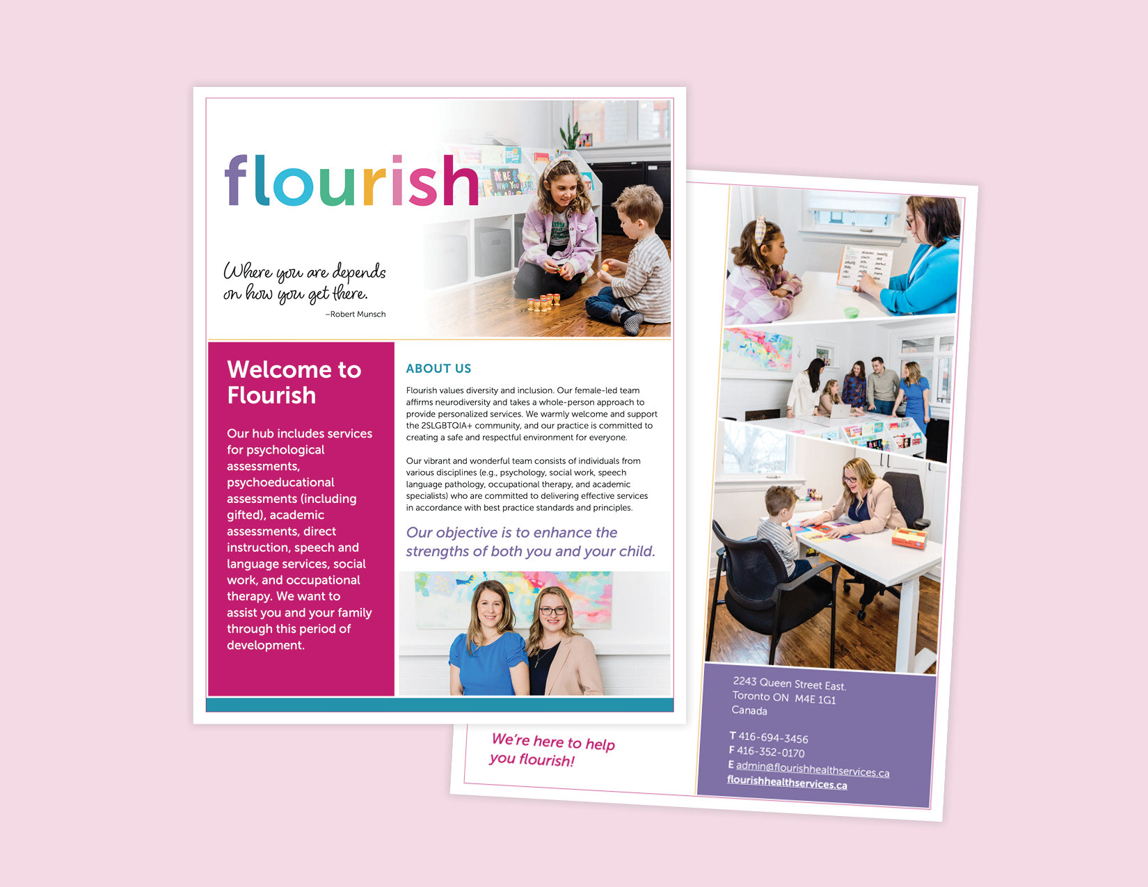 Flourish Health Services provides psychological services, assessments, social work, speech, language and occupational therapy primarily to children and teens.